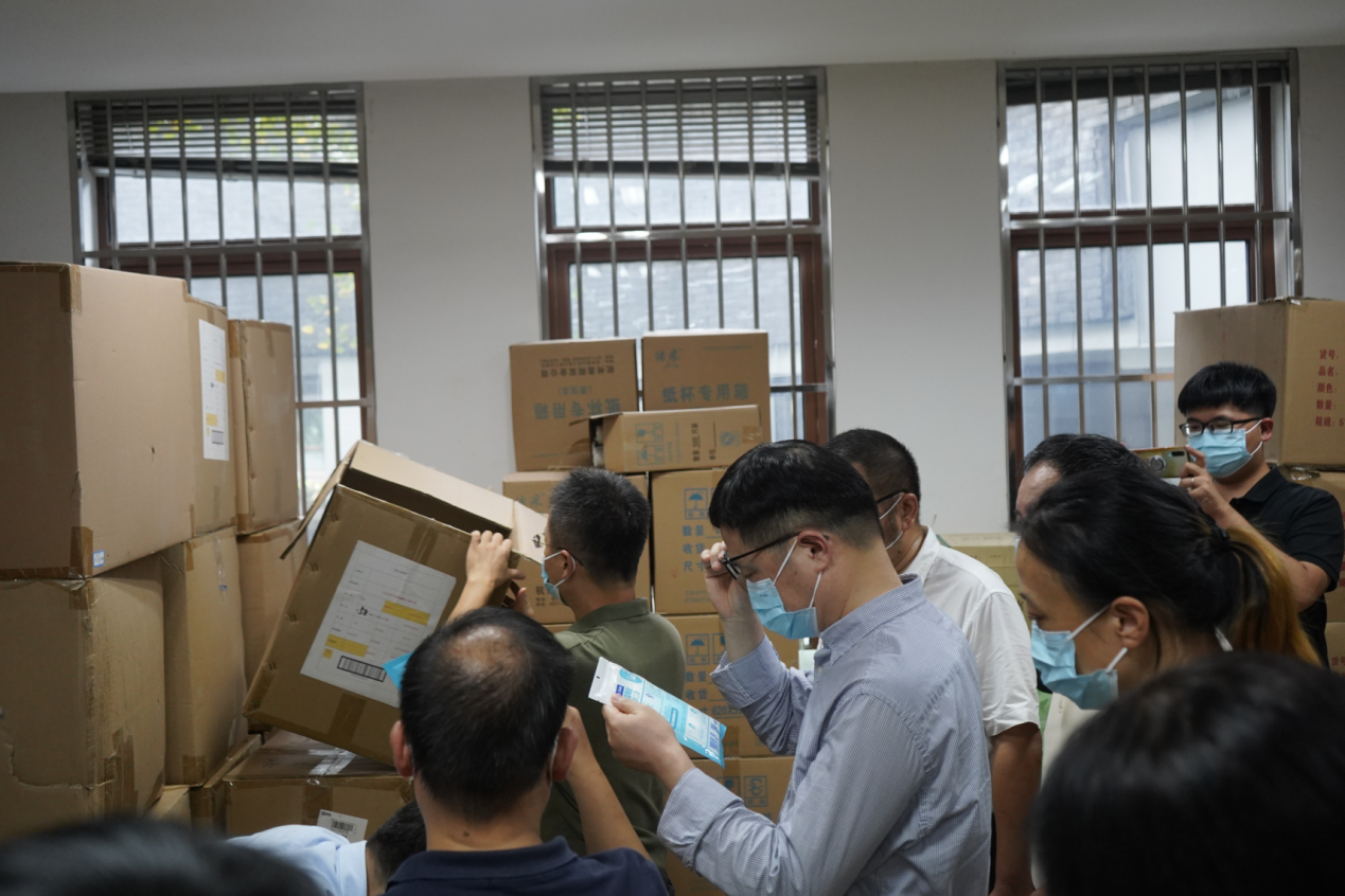 钱志清一行首先来到学院防疫物资储备室,检查了口罩、消毒液等物资储备情况,要求保证半个月的防疫物资储备,且质量符合防疫要求。随后,在6213室召开防疫工作座谈会,听取了保卫处、学生处、人力资源处、后勤产业处等部门负责人汇报学院校门管控、师生疫情监控、合作单位人员管理及后勤服务等情况。