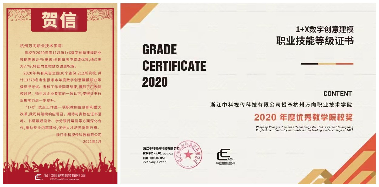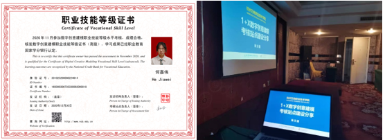 自教育部启动“1+X”试点工作以来,工业设计专业成功申报了试点和考点单位。积极组织老师参加相关培训,其中4位老师取得数字创意建模 1+X 认证讲师证书(中级),3位老师取得认证中级考评员资格。2020年11月,工业设计专业27位同学首次参加1+X数字创意建模职业技能等级证书(高级)考试,通过率达77%,被“1+X”证书组织评为“2020年度优秀教学院校奖”。2021年7月,陈方圆老师受考评组织中科视传的邀请,给来自全国多所院校的参会教师作“1+X数字创意建模考核站点建设”的主题分享。