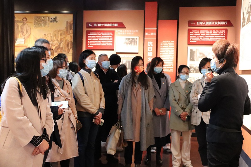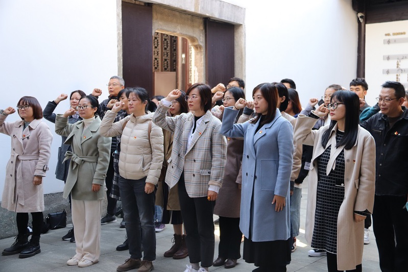 在中共杭州小组纪念馆,党员们观看了讲述浙江省第一个党组织——中共杭州小组成立历程的情景剧,重温了入党誓词,坚定了师生为党和国家事业不断奋斗的初心使命。