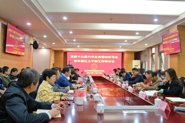 接下来,学院将把学习、宣传和贯彻党的十九届六中全会精神,作为当前和今后一个时期的重要工作,进一步推进六中全会精神学习走深走实,在全院上下掀起学习宣传贯彻六中全会精神的热潮,以优异的成绩迎接党的二十大胜利召开。