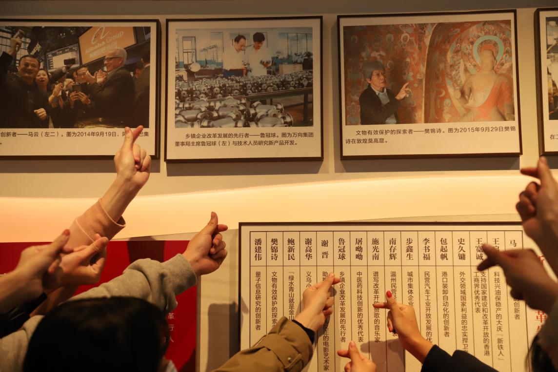 (万向学子参观时看到改革先锋奖章获得者名单——乡镇企业改革发展的先行者:鲁冠球,激动比心。)