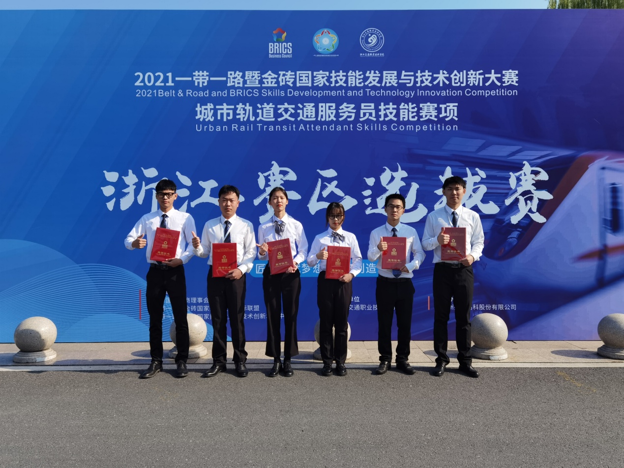 12月3日-5日,2021一带一路暨金砖国家技能发展与技术创新大赛城市轨道交通服务员技能赛项浙江赛区选拔赛在浙江交通职业技术学院举行。我院参赛团队在智能技术系城市轨道交通运营管理教研室赵帅帅、董梦雪老师的精心指导下,首次参赛,并在比赛中喜获佳绩:沈宸剑、江刘康、杜莹洁同学组成的队伍获得省级二等奖并挺进全国总决赛,何凌杰、陈超豪、吕萍同学组成的队伍获得省级三等奖。