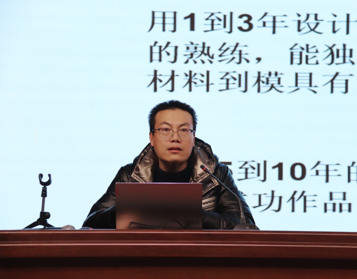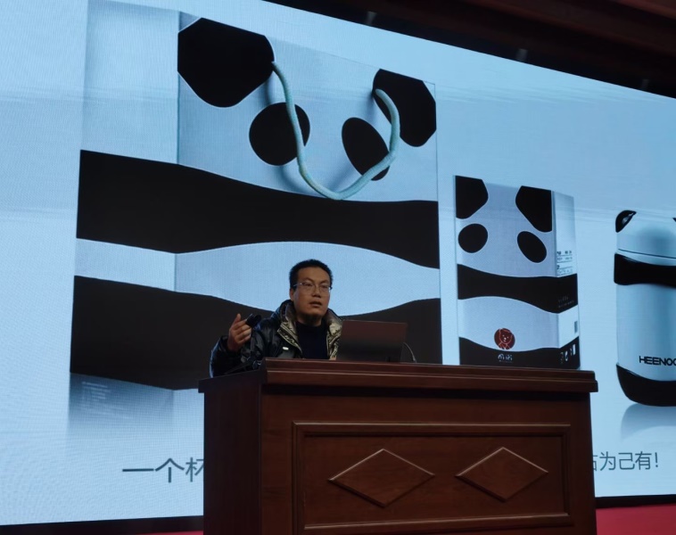 本次讲座主讲人之一沈达是我校企业专家,同时为杭州仲夏香橙、设计师自主品牌沈小达等企业创始人。讲座中,沈达首先讲述了大学时期初学设计的迷惘和立志“成为设计大师”的心愿故事,拉近了与学生的距离;随后,分享了自己设计之路的规划,鼓励同学们给自己的未来画下蓝图。接着,通过“造桥机-自动化行进挂篮研发”项目(杭州市工业设计十大经典案例)、三个开设计公司以后的日用品设计故事、仲夏香橙农业品牌项目等具体案例,阐述了工业设计的实践意义,介绍了腾赢“小设计到大设计”、“虚实结合”、全链路思考的产品设计流程,以及设计思维创新是如何为品牌赋能的。