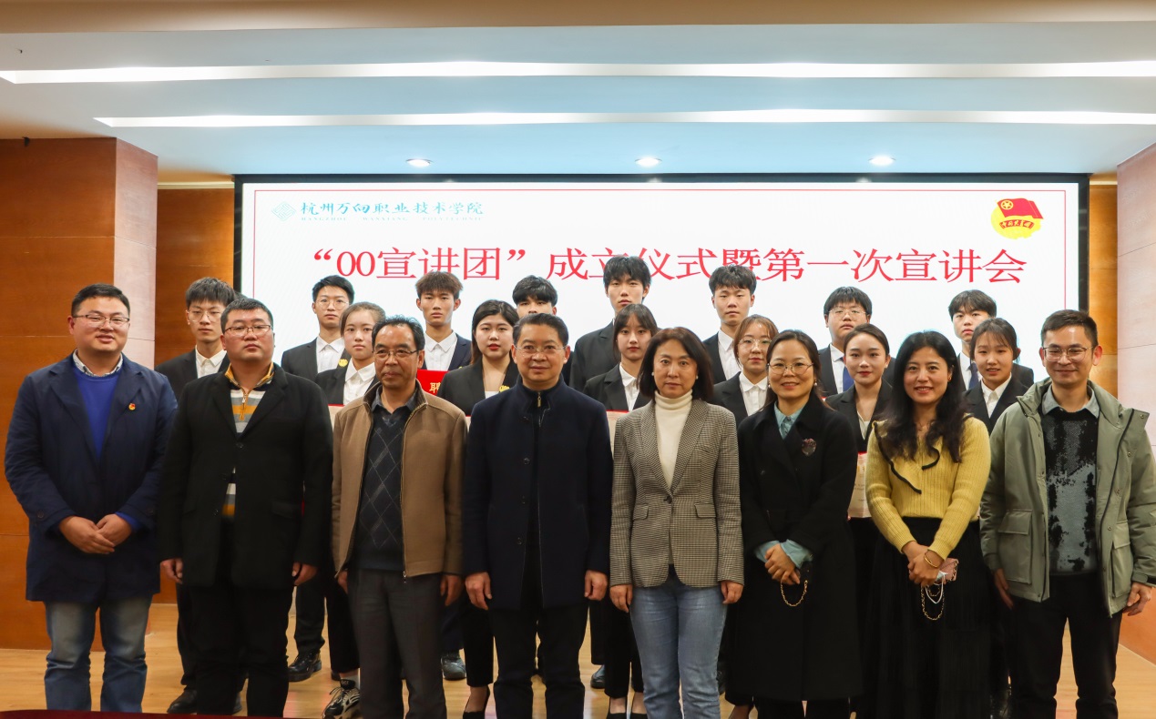 “00宣讲团”学习贯彻六中全会精神“六讲六做”大宣讲活动由院团委发起,招募00后优秀青年大学生为成员,聘请思政、人文专任教师为指导教师,用小切口讲出大道理,以小故事讲好大发展。
