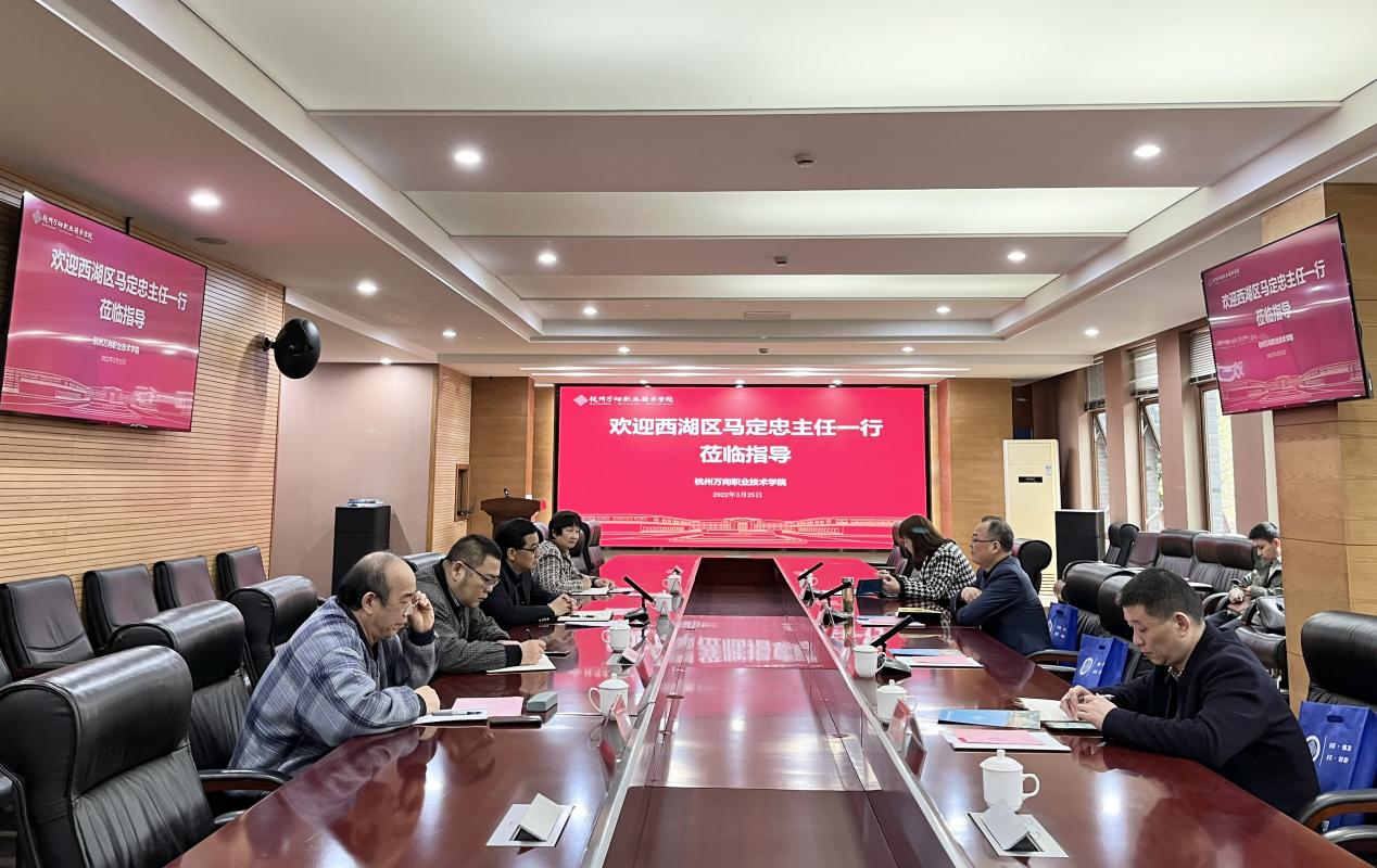 学院院长牟惠康对西湖区政府领导的莅临表示热烈欢迎,感谢区政府对学院的关心与支持,表达了学院为西湖区贡献力量的意愿,并介绍可以服务与合作的相关事项。