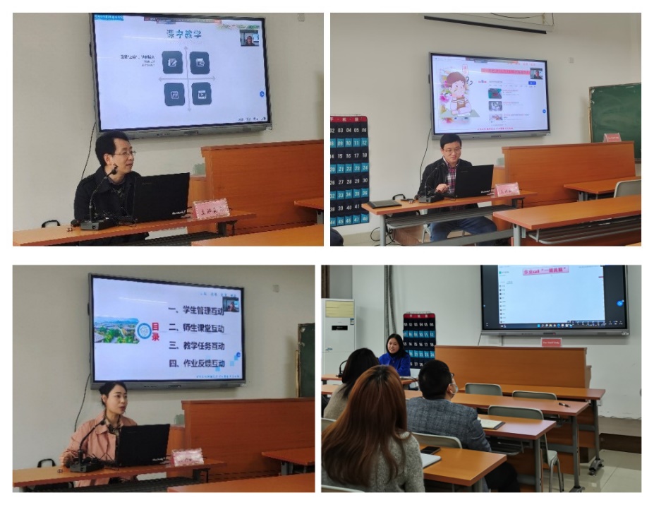 周桃义、张学兵、叶丽娜、魏淑仙四位老师作为特邀嘉宾,分别从线上教学全过程的掌控、网络资源的获取和使用、线上教学互动的方法和技巧、基于QQ群的课堂互动和作业管理等方面分享了自己在线上教学过程中的感受、经验和技巧。由于所讲内容都来自于一线教学的实践过程,针对性强,实用性高,极具学习价值和参考意义,受到了与会教师的高度评价。
