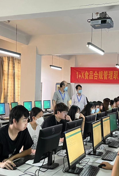 学院高度重视此次考试,从师资培训到各资源协调均给予了大力支持。3月,食品专业3位教师参加了“1+X食品合规管理职业技能等级证书师资暨考评员培训班”,获得了食品合规管理培训讲师证书和食品合规管理培训考评员证。4月,食品专业教师多次研讨,依据“1+X食品合规管理职业技能等级证书(中级)”要求,利用节假日整理培训资料,供报名考试的学生学习。5-6月,培训教师团队有序顺利完成证书相关知识、技能的培训工作。同时,教务处、资讯技术处、康养旅游系办、食品专业“达人研学营”相关工作人员全力配合,完成考试站点申报、测试模拟、考务安排等一系列工作,学院副院长朱仁学教授、教务处处长胡建华亲临考场巡视指导,康养旅游系主任张海松担任考试负责人,确保考试的顺利开展。