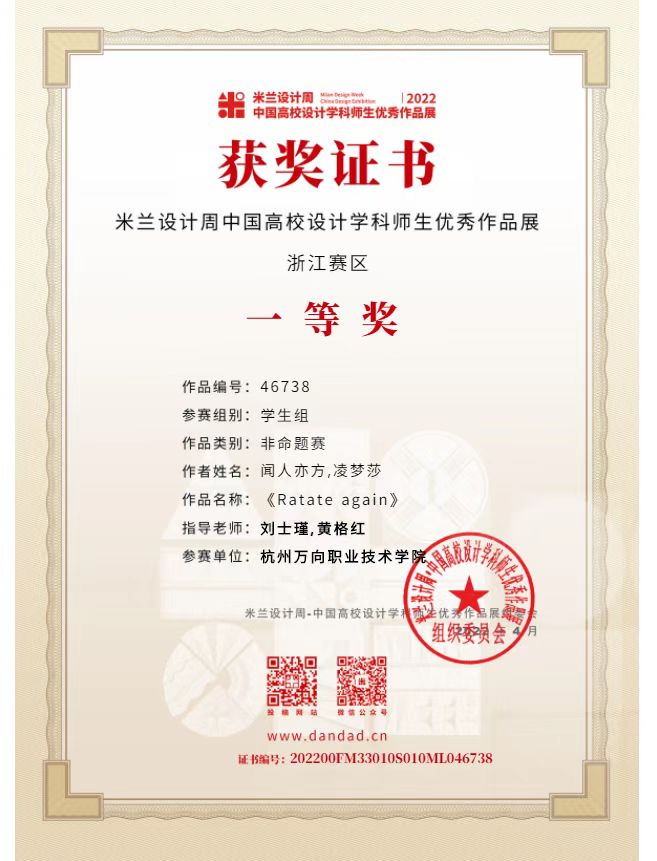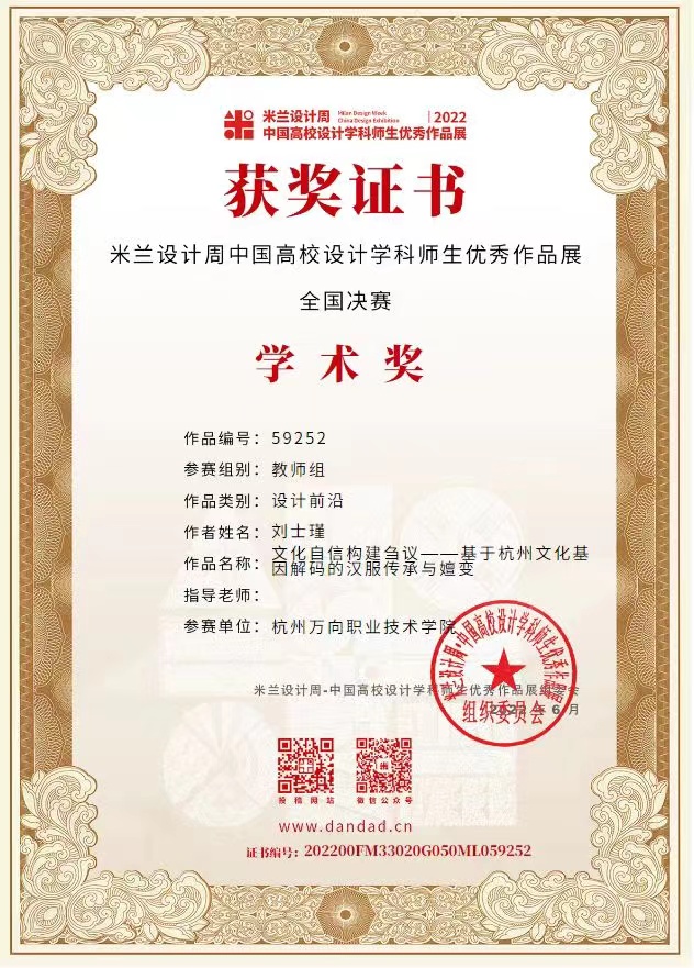 服设专业师生获得“2022年米兰设计周-中国高校设计学科师生优秀作品展”荣誉证书