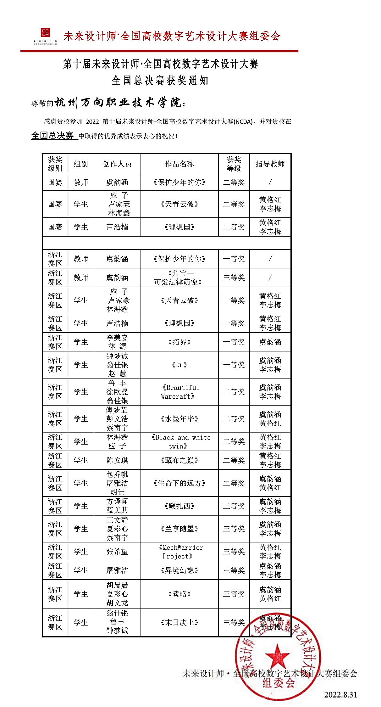 服设师生荣膺“第十届未来设计师全国高校数字艺术设计大赛(NCDA)”获奖通知