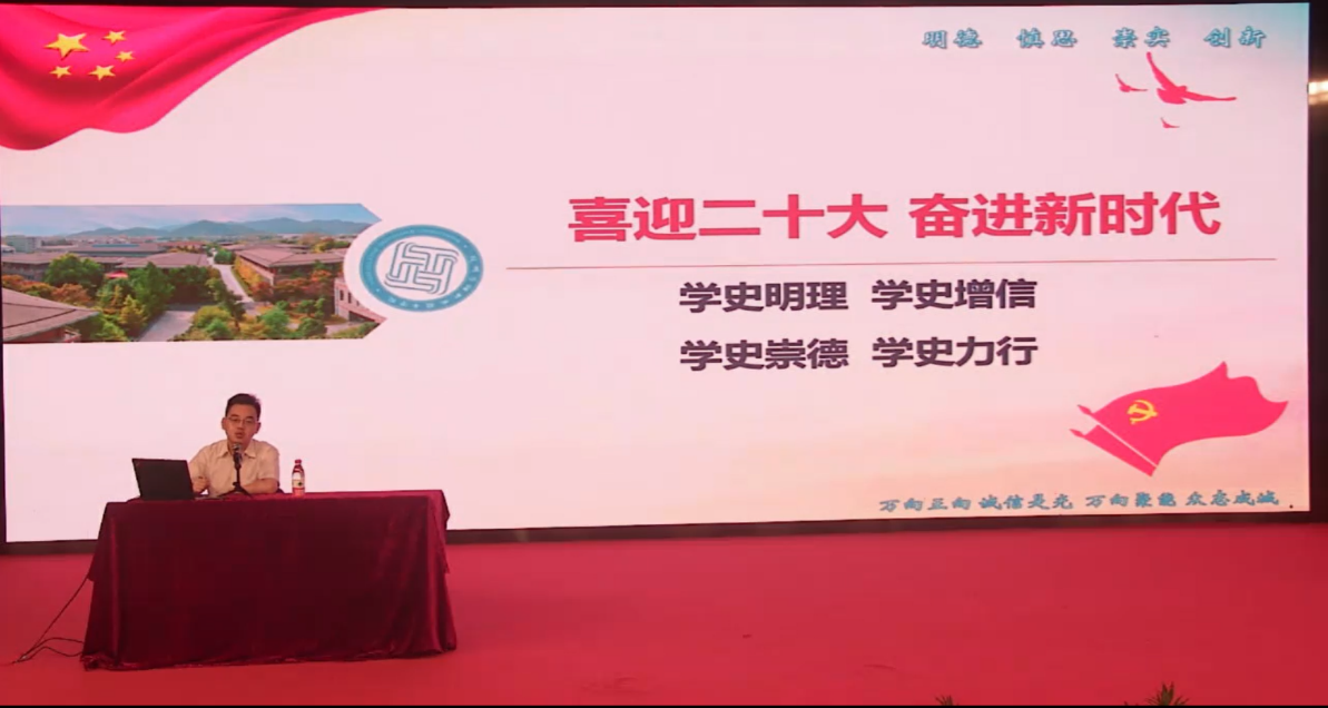 9月18日晚,设计创意系党总支邀请思政教师姚强为2022级新生上了一堂生动的党史课。设计创意系和智能技术系1000余名新生在小报告厅和教室共同聆听。
