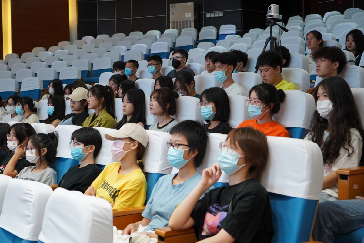 新生在报告厅聆听党课