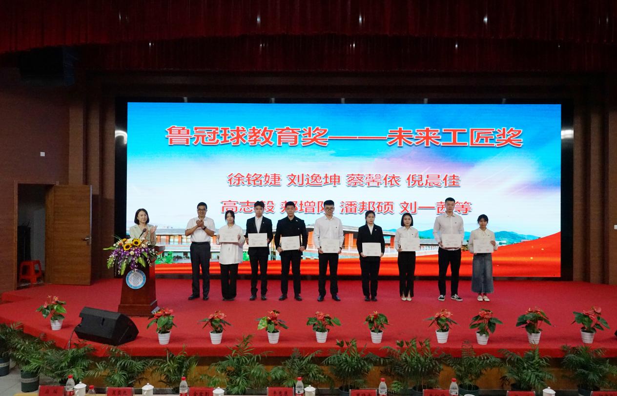 为“鲁冠球教育奖--未来工匠奖”获得者颁发证书