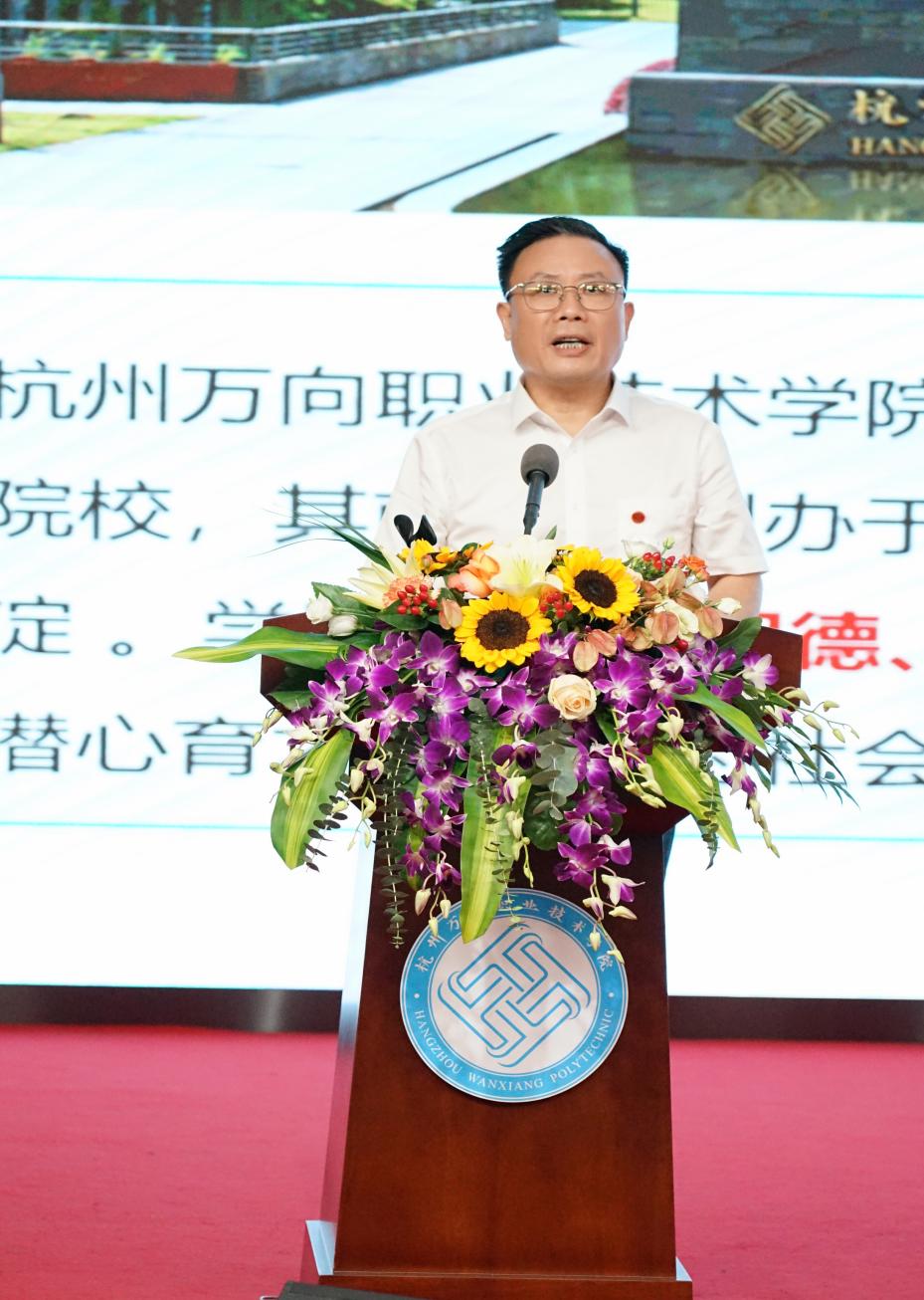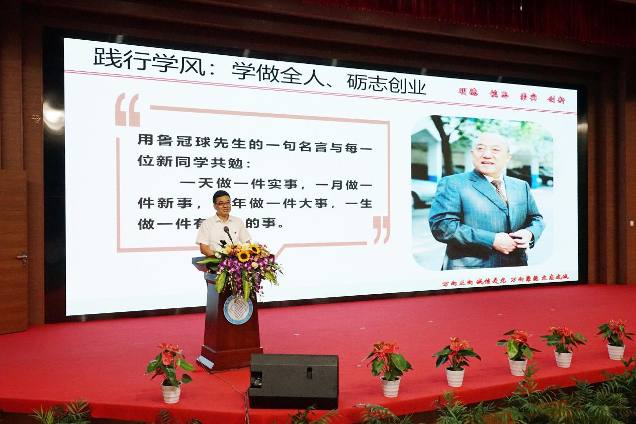 典礼最后,牟惠康院长作主旨讲话。他希望,新生们在全国上下喜迎二十大,开启中国现代化新进程之际,以迈进杭万院,开启大学新生活为契机,尽快适应新“学校”、新环境,学会管理适应、生活适应、学习适应,铭记初心,培育好爱心、牢记葆细心、坚持常用心,在鲁冠球精神的指引下,学做全人、砺志创业。