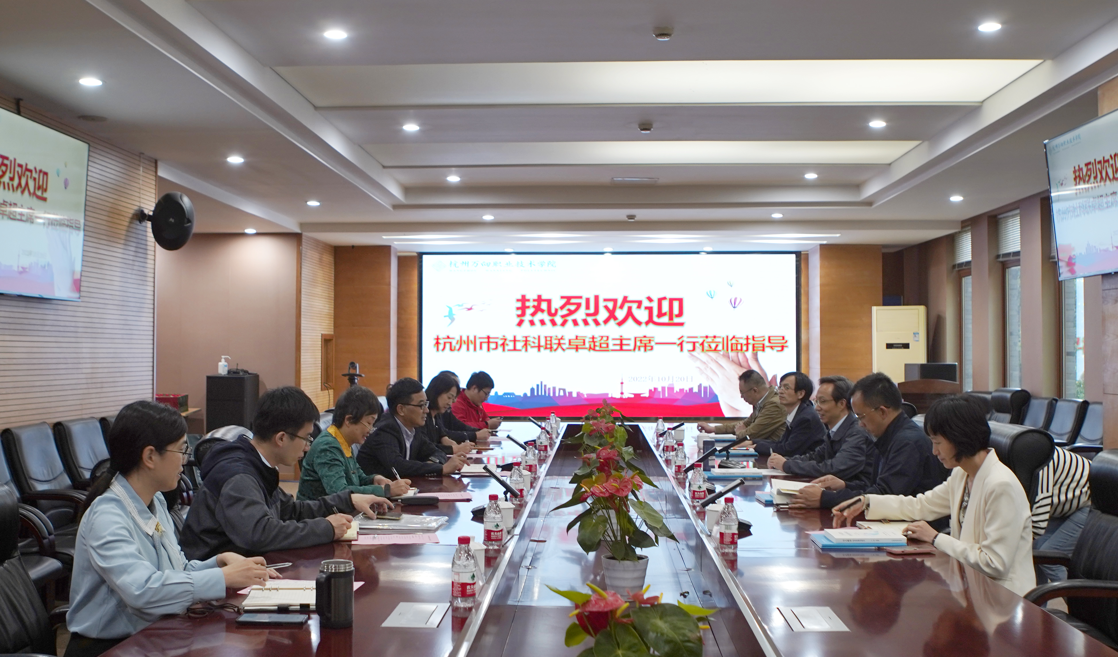 10月20日下午,杭州市社科联主席卓超一行莅临我院调研杭州市哲学社会科学“新农村STEAM教育研究基地”的建设情况,并在6216会议室召开座谈会。学院院长牟惠康、副院长高兰、科研处处长张倩以及基地主要研究成员等参加座谈交流。