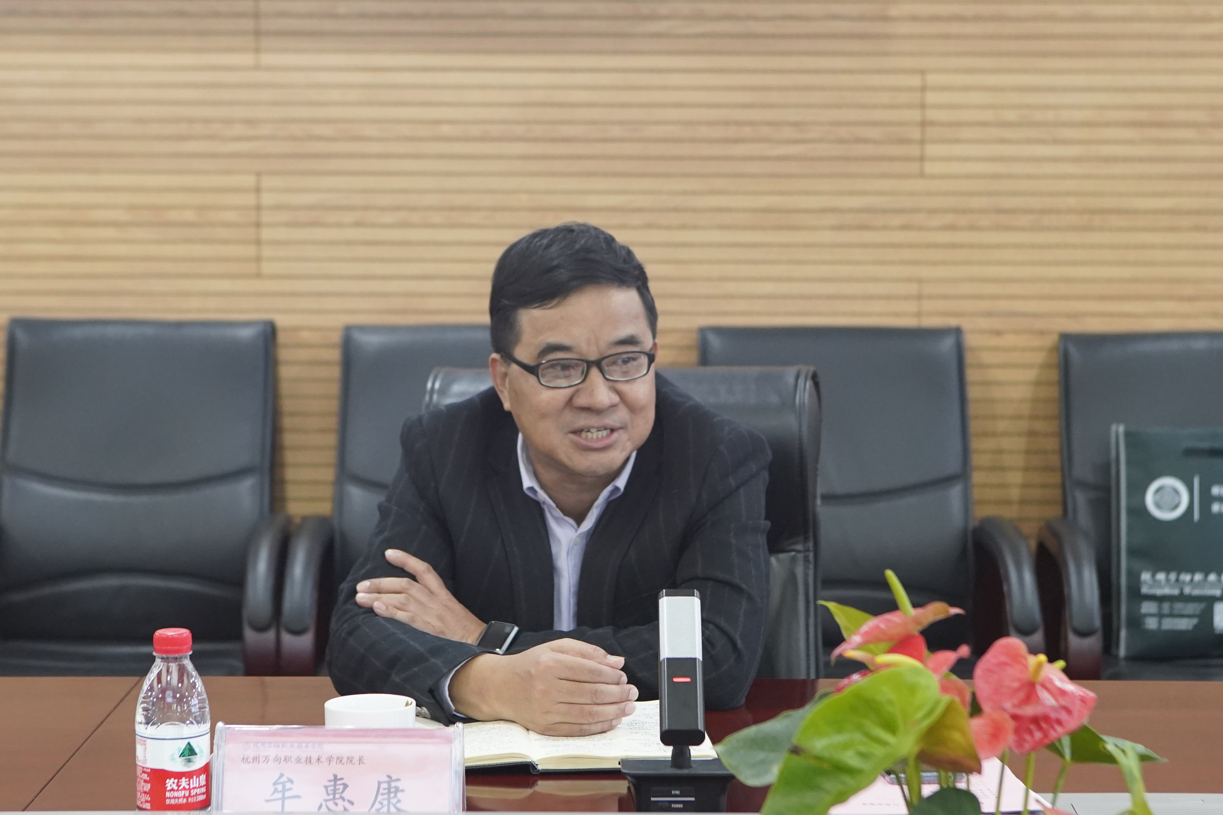 座谈会上,学院院长牟惠康对杭州市社科联领导的莅临表示热烈欢迎,感谢市社科联对学院的关心与支持。他汇报了学院社科研究的基本情况,并表达了希望学院在杭州市社科联的指导下,以学院社科领域的特色专业和研究优势为基础,能发挥更大力量,贡献更多智力成果的强烈意愿。