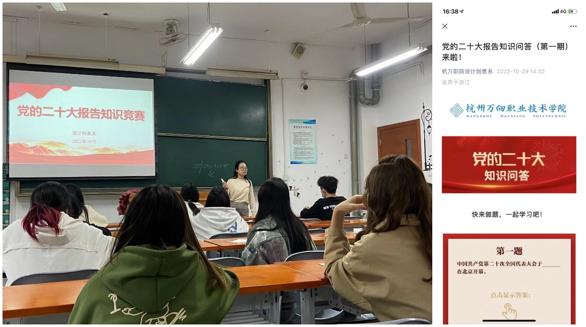 近日,设计创意系党总支以线上、线下相结合的方式,面向学生开展党的二十大报告知识竞赛活动,通过活动营造“以赛促学、以学促行、比学赶超”的良好氛围,掀起学习党的二十大精神热潮。