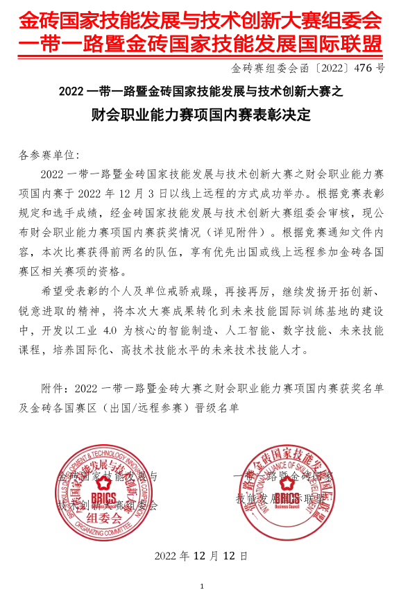附件:2022一带一路暨金砖大赛之财会职业能力赛项国内赛获奖名单