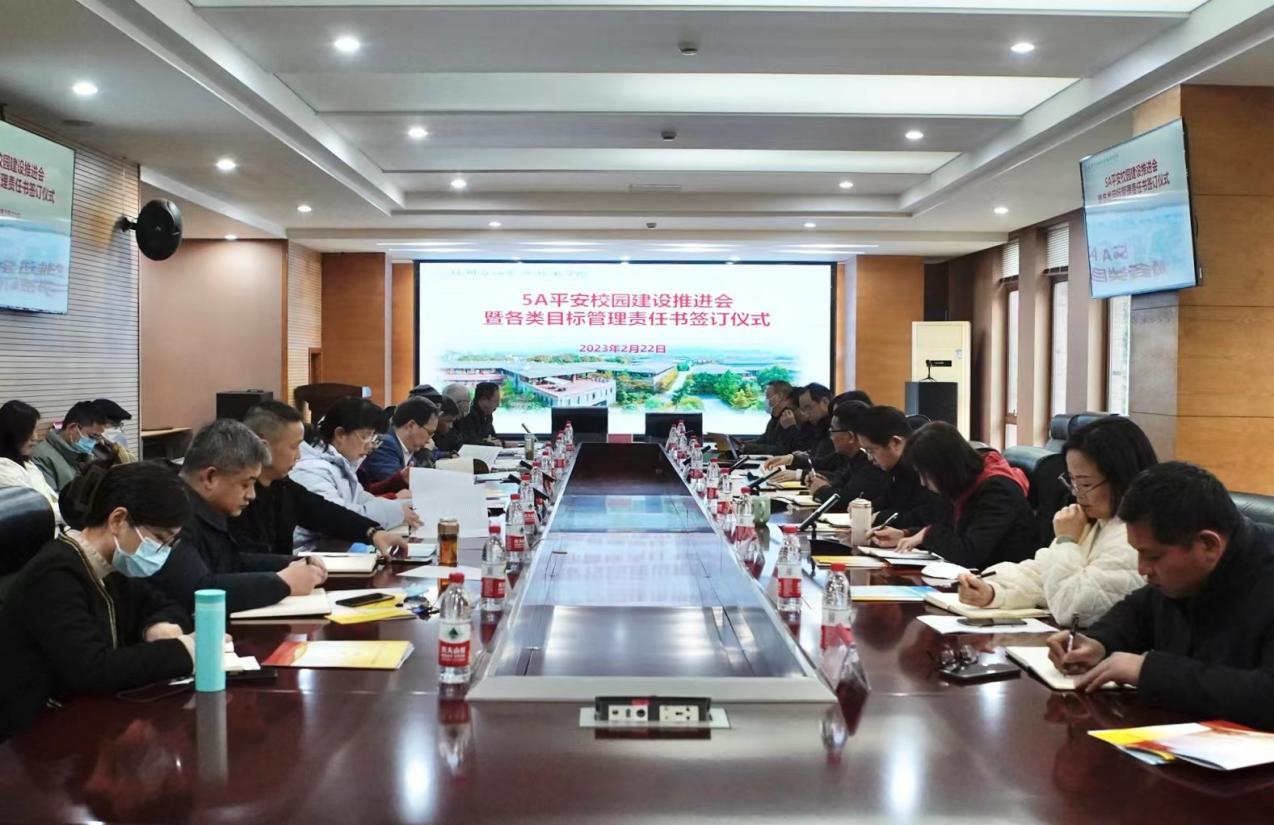 2月22日下午,学院召开5A平安校园建设推进会暨各类目标管理责任书签订仪式。会议由学院副院长高兰主持。全体中层以上干部参加会议。
