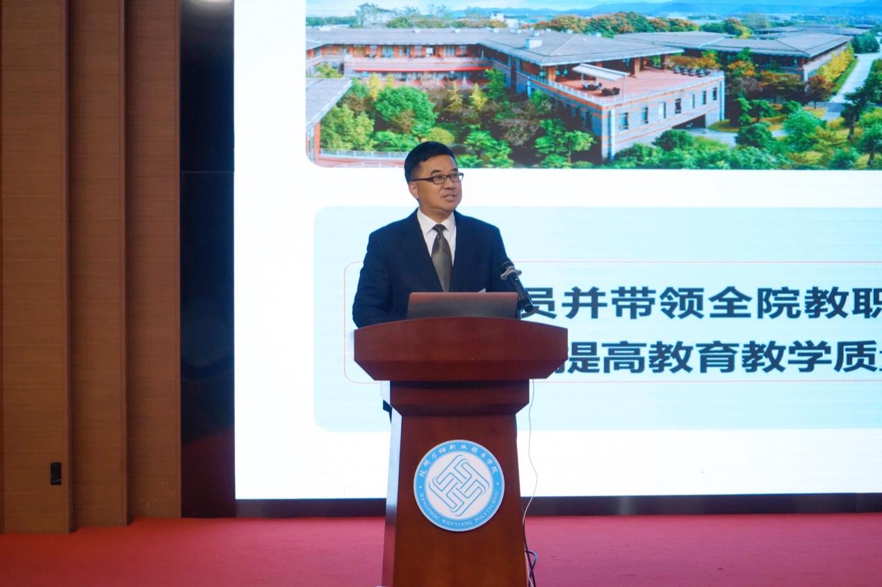 管大源书记在致辞中强调,在深入学习贯彻落实党的二十大精神及全国“两会”精神之际,我院组织召开教学与科研“两会”,主要目的是要落实“队伍强校、对标先行”工作方针,推进标杆管理,实施质量工程,深化科教融汇,着力打造精品学院。“两会”同步部署,也有教学与科研相互促进的意图。他就打造高水平国际化职业院校,着力培养标志性成果和特色,结合学院实际,提出了四点意见:一是切实提升学院关键能力。要围绕提升质量,对好国际、国家、省、学院四级标准和标杆,培育成果和特色。二是牢牢把握立德树人根本任务。要时刻牢记“为党育人、为国育才”的使命,成为塑造学生品格、品行、品味的“大先生”。心无旁骛地健全全人教育模式,大力弘扬鲁冠球精神,将劳模精神与企业家精神贯穿人才培养全过程。三是不断强化师资队伍建设,努力提升科研工作水平。要抓住队伍建设这个“牛鼻子”,做好教学科研、专业建设、个人综合素质提升、师德师风等的“对标先行”。四是努力提升科研工作水平。要持之以恒实施科研兴校战略,做到教学、科研两手抓、双促进、共提升。