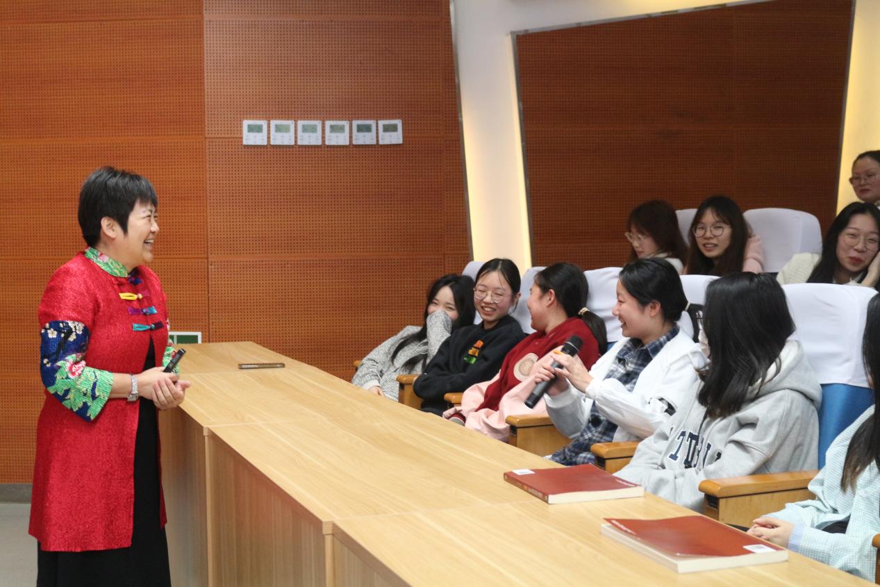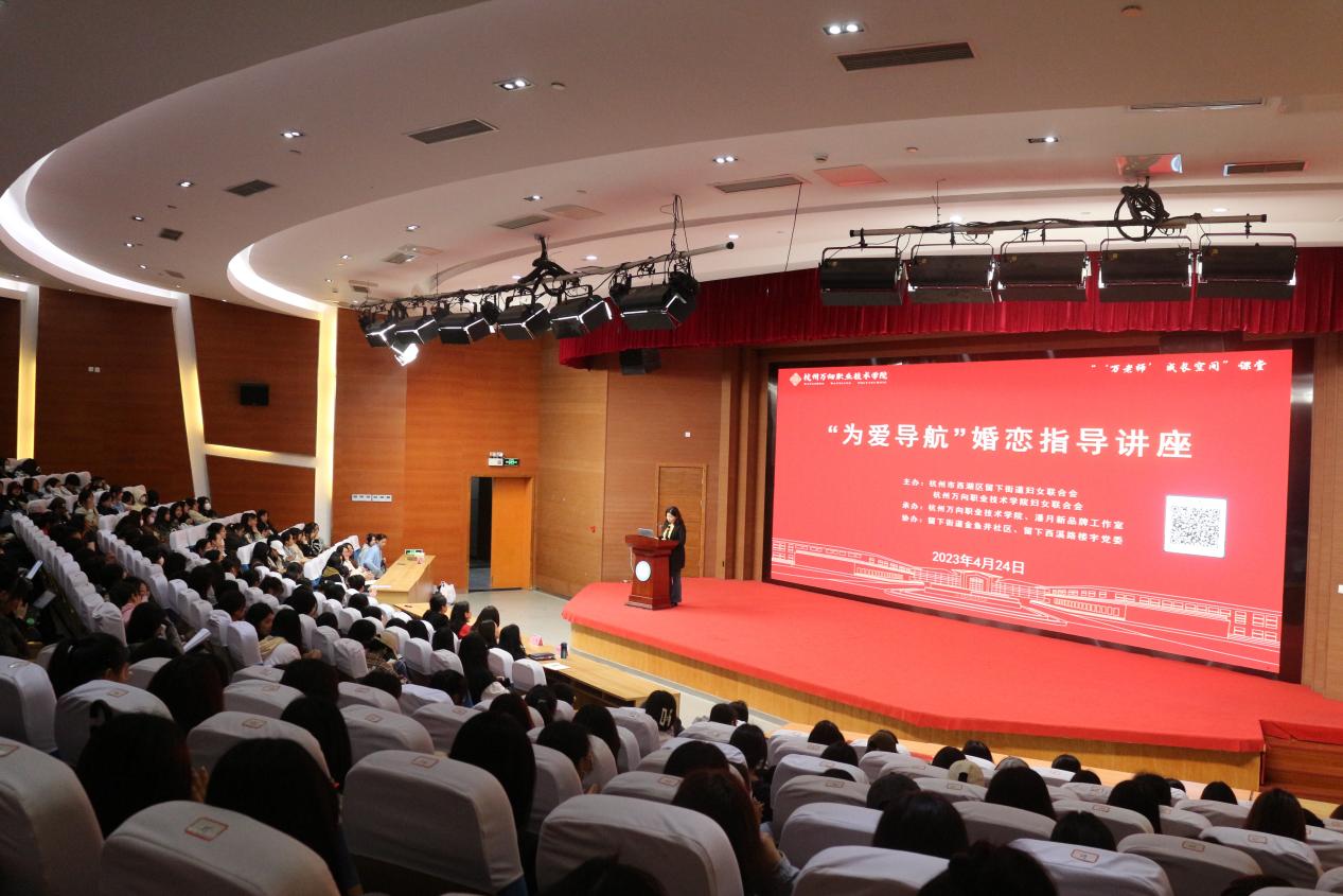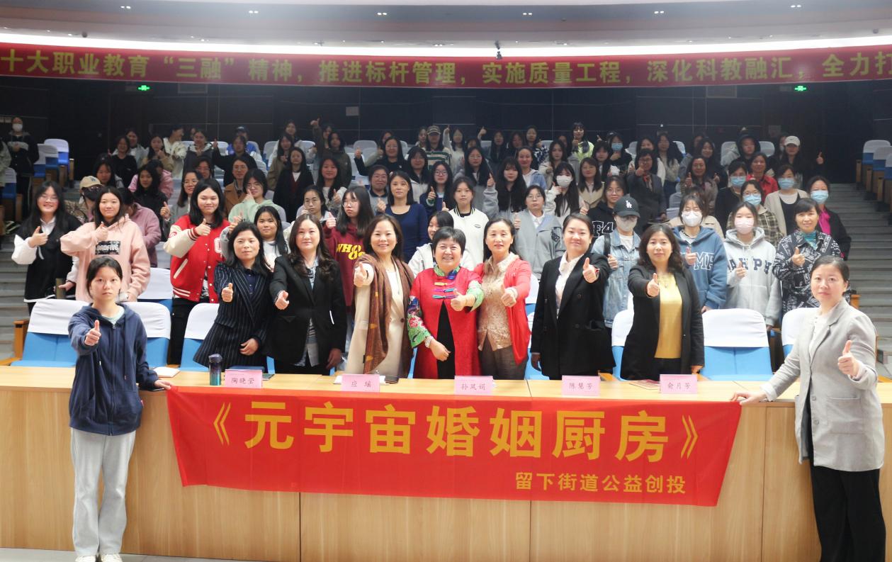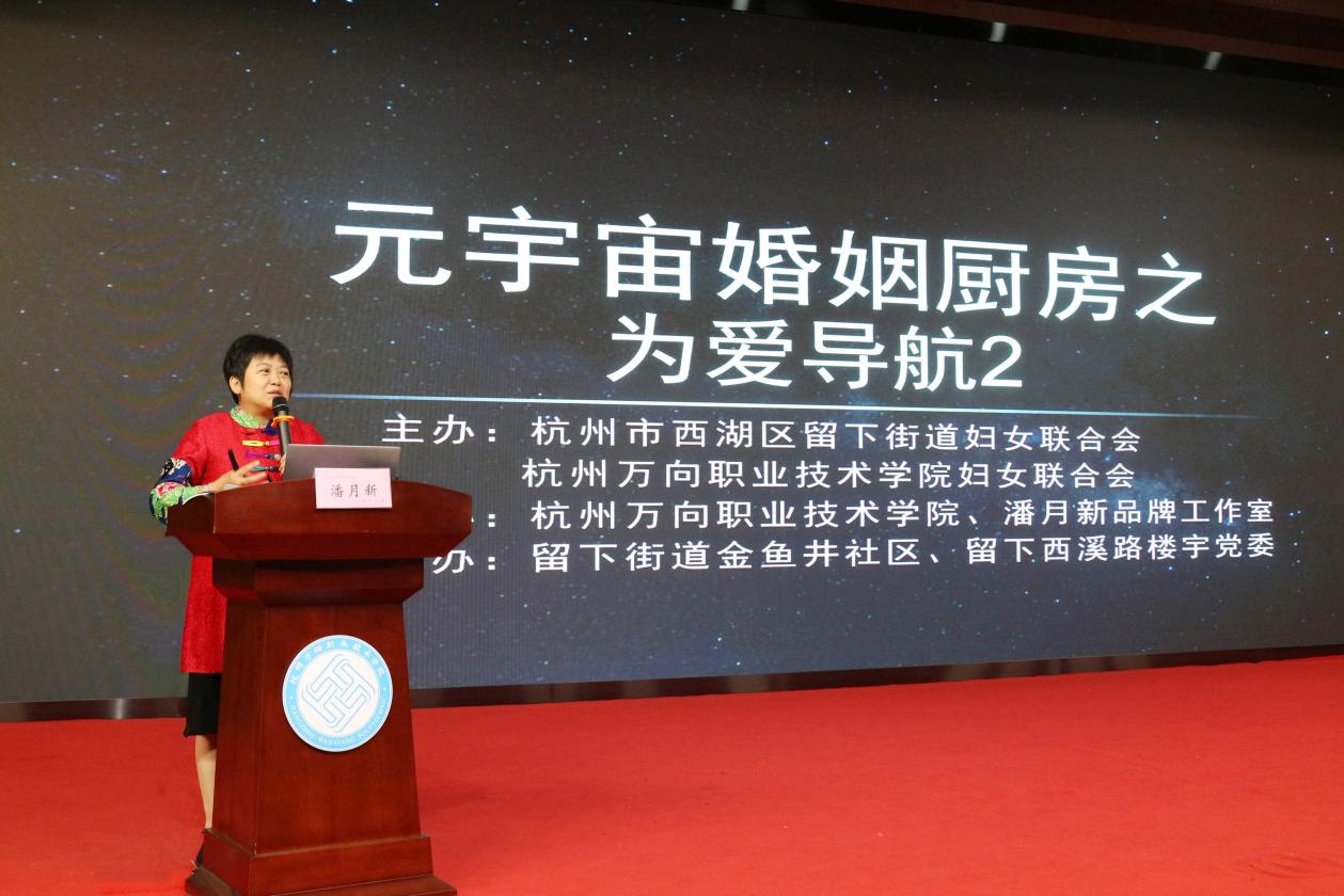 4月24日,学院妇联“万老师成长空间”课堂首次开课。由学院妇联和西湖区留下街道妇联联合主办的《元宇宙婚姻厨房之为爱导航》婚恋指导讲座在学院2号校区小报告厅举行。讲座特邀请全国妇联儿童维权先进个人、浙江省妇女干部学校特邀讲师潘月新老师主讲,学院女教职工代表、女学生代表共计300余人参加。