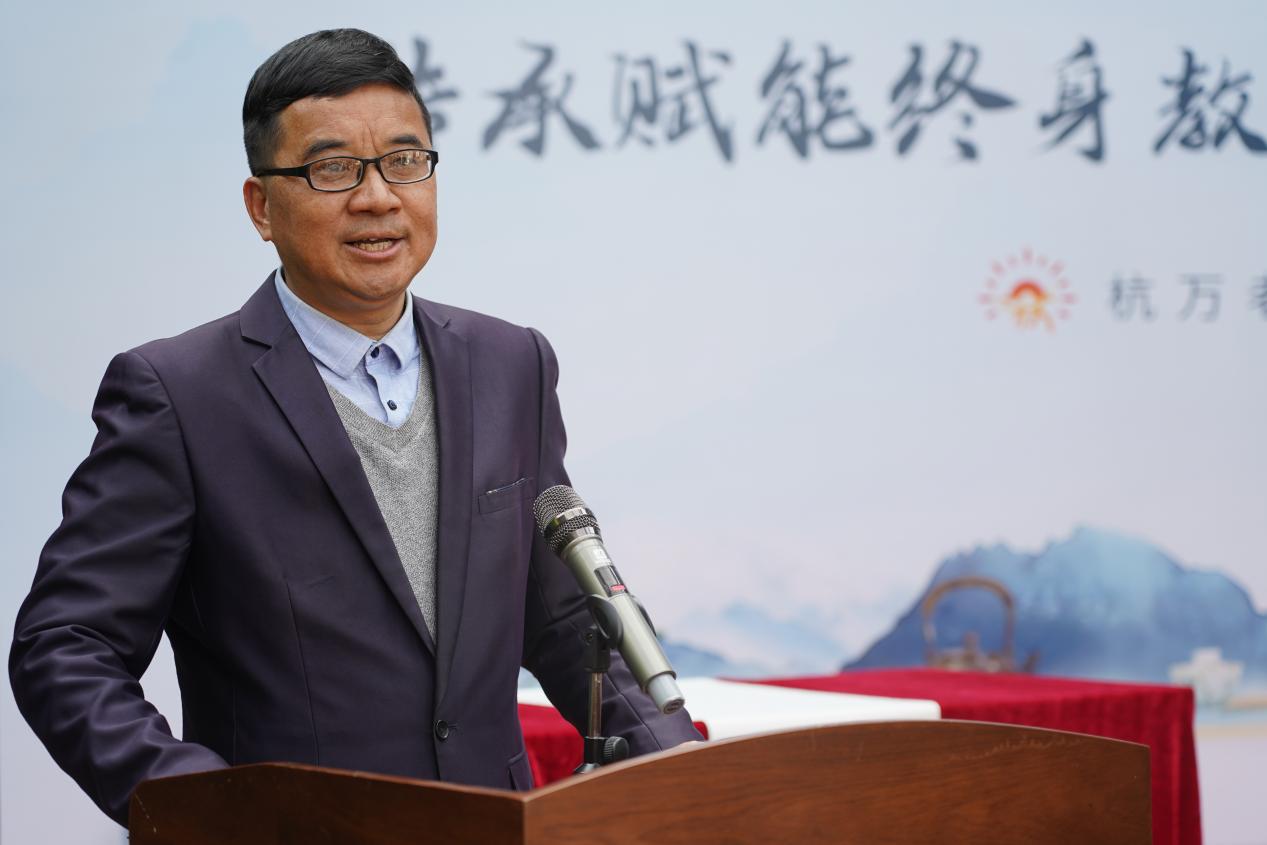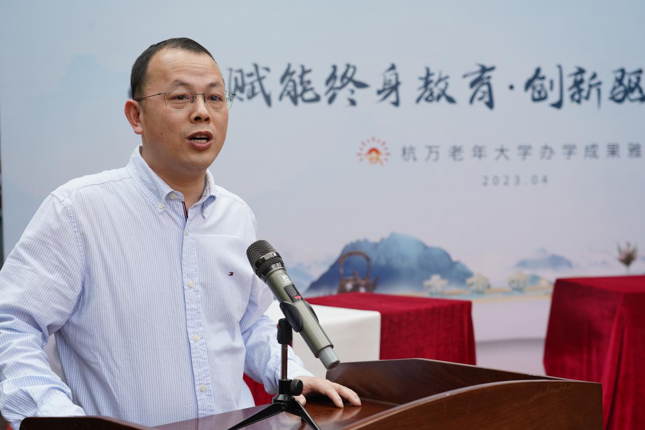 春风拂面,垂柳蓬茸。4月26日下午,一场别开生面的杭万老年大学“传承赋能终身教育•创新驱动和合亚运”主题办学成果展在学院二号校区图书馆前广场举行。杭州市委老干部局副局长郑鹤、杭州老年大学校长李辉、杭州市教育局高等教育处处长张启鹏、学院院长牟惠康、学院资源总监金耸影、老年大学全体教师学员出席活动。