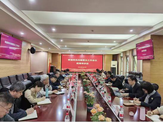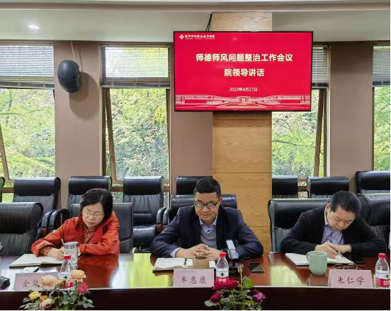 4月27日下午,学院在6216会议室召开师德师风问题整治工作会议,会议由院长牟惠康主持,师德师风问题整治工作领导小组及办公室全体成员参加。