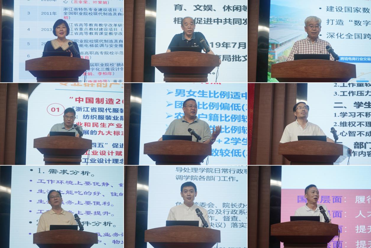 四位系主任与五名行政部门负责人先后上台,进行“说专业群”与“说服务”竞赛,就系情、校情、与标杆院校的差距及存在的问题进行了深入剖析,并提出了专业群建设、行政服务的具体目标和改进措施。