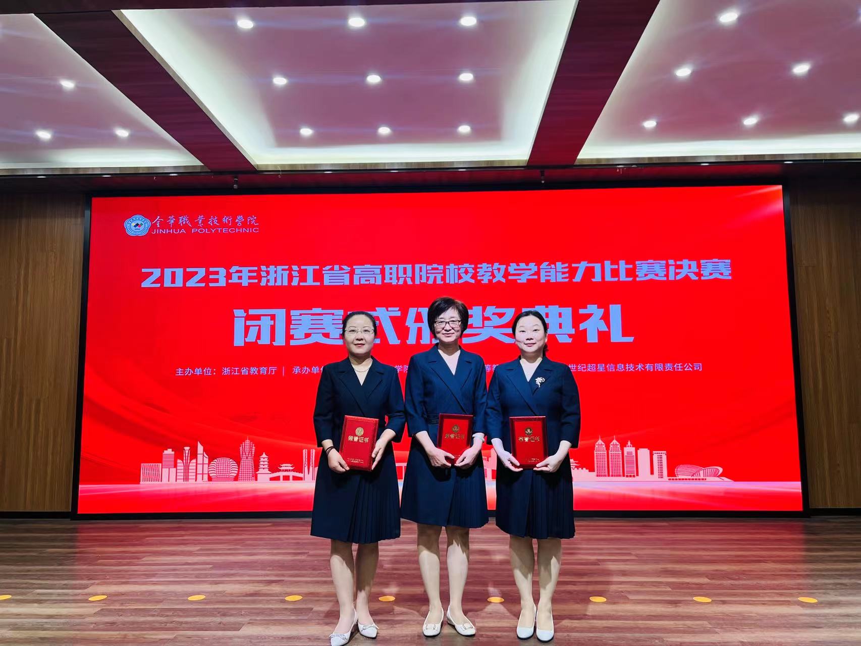 7月30日,由浙江省教育厅主办的2023年浙江省高职院校教学能力比赛决赛在金华职业技术学院举行。我院国际经济与贸易专业教研室唐夏韵、高彩云、黄亚萍三位教师获得二等奖。