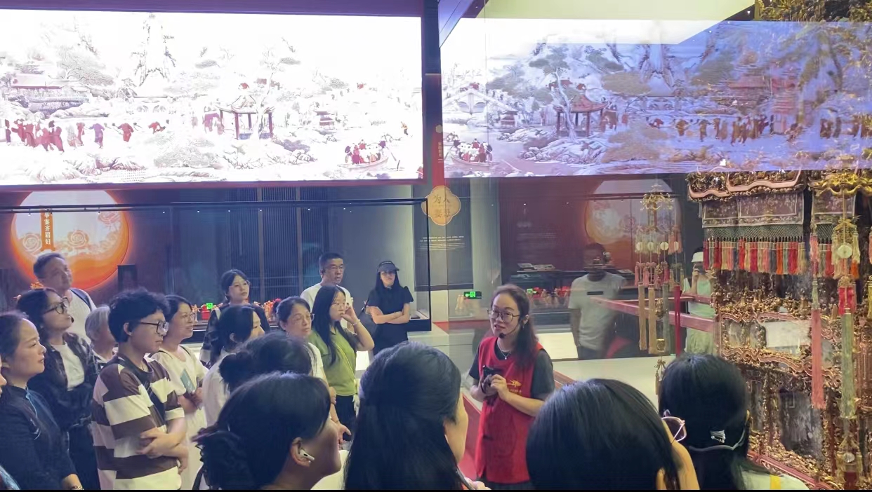 思政部徐燕丽老师在浙江省博物馆展厅内的万工轿前讲解。