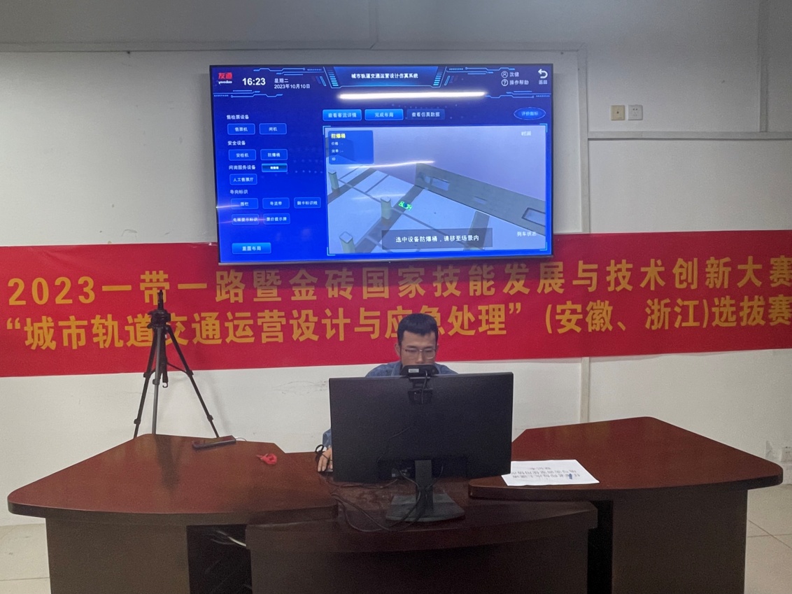 10月11日,2023金砖国家职业技能大赛城市轨道交通运营设计与应急处理赛项浙江省区域选拔赛在线上正式开赛。我院城市轨道交通运营管理专业由领队老师杨文远、指导老师王苏芳、参赛选手城轨224班沈健组成的团队荣获省第一名。