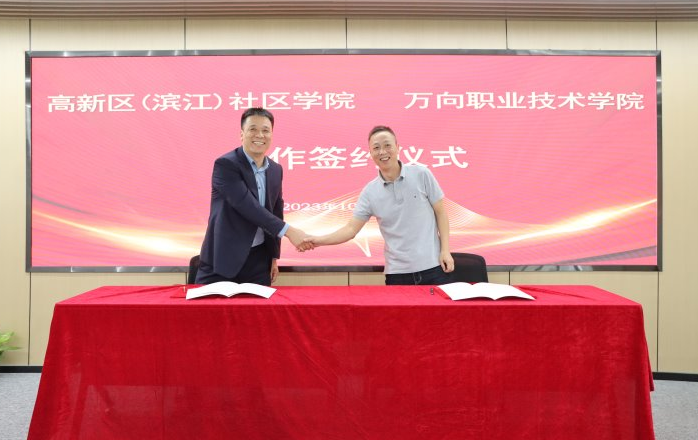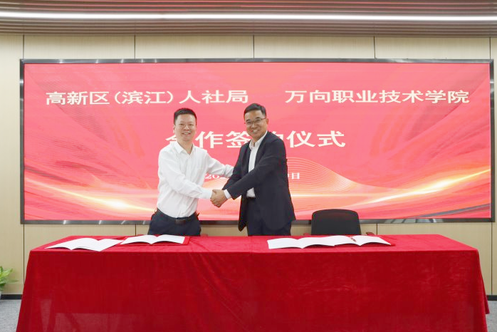 会上,学院与高新区(滨江)人力社保局、高新区(滨江)社区学院分别签订了合作协议。