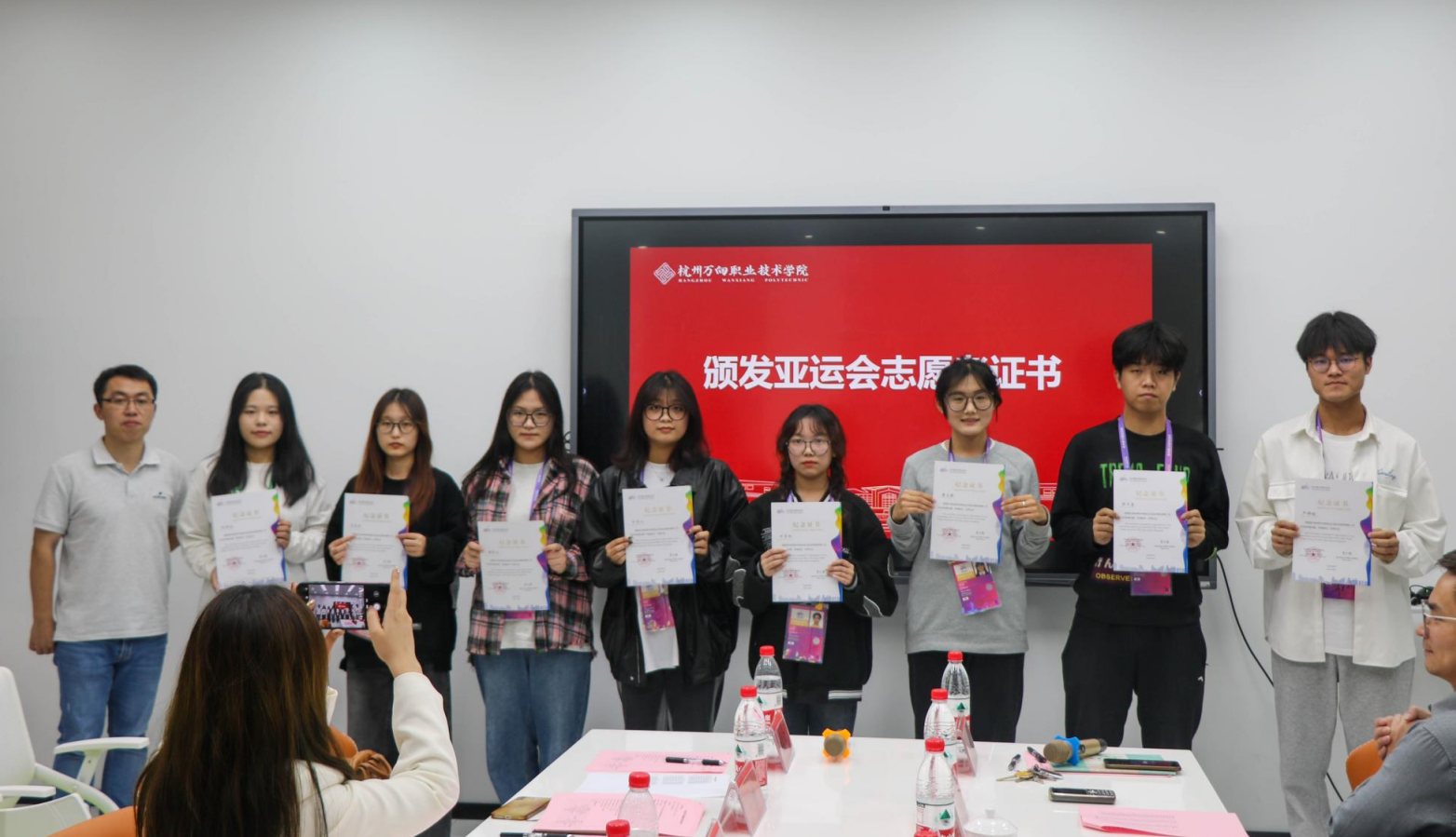 从6月到10月,四个多月的时间我院学生志愿者在亚运会服务岗位上努力工作,展现了万院学子良好的精神风貌和专业素养,得到了历练和成长,留下了珍贵的记忆,为学院赢得了荣誉,杭州第19届亚运会亚运村运行团队向学院签发了亚运会服务支持单位证书。