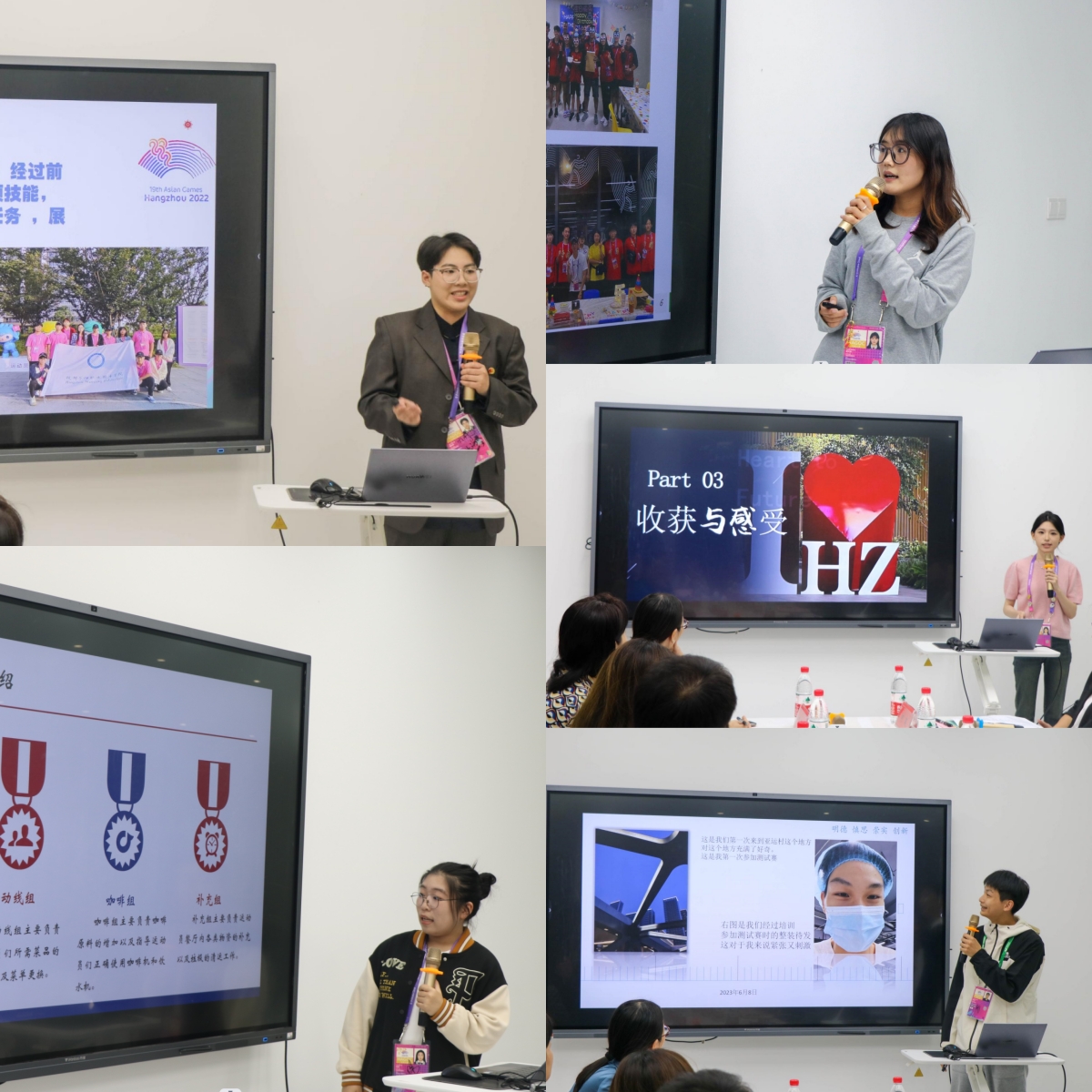 会上,来自跨商223班潘柏吟、环监221班贯文琪、商英222富愉涵、环监221陈轩豪、跨商223班郑雨五位同学作为志愿者代表生动讲述了他们在亚运村中工作内容、与运动员的友好互动,分享了服务期间的收获体会。大家都表示非常感谢学院为他们提供的志愿服务机会,使他们能用所学的专业知识和技能为亚运会提供优质服务,同时也提升了英语口语表达、餐饮服务、人际沟通、组织协调等多方面的能力。