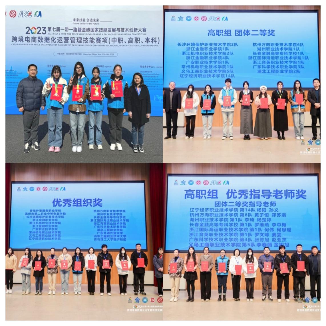 11月17日-19日,“2023第七届一带一路暨金砖国家技能发展与技术创新大赛”之“跨境电商数据化运营管理赛项”的总决赛在浙江金融职业学院举行。我院跨境电子商务专业222班金宇昕、沈菲、王雨琛、李姝祎四位同学荣获团体二等奖,黄子恒、郑苏娟老师获得大赛“优秀指导老师奖”,Beat365唯一官方网站获得“优秀组织奖”。