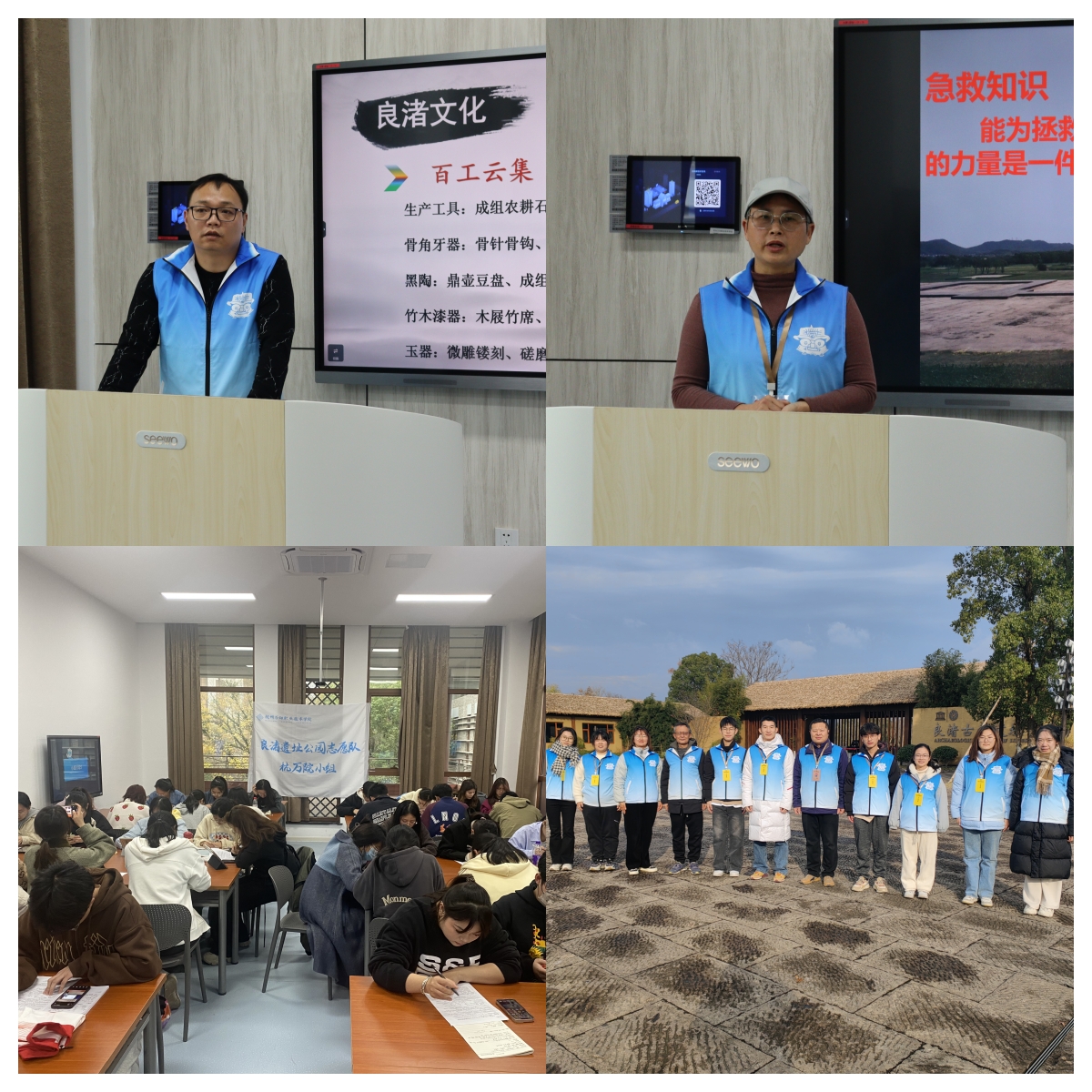 培训当天,良渚古城遗址公园志愿者服务队的三位志愿者老师分别从志愿者理念与良渚文化、急救知识与志愿服务实操等三个方面对同学们进行了专业的指导。培训后,进行了随堂考核。新志愿者纷纷表示通过这次培训,不仅学到了良渚文化的相关知识,还收获很多志同道合的朋友。