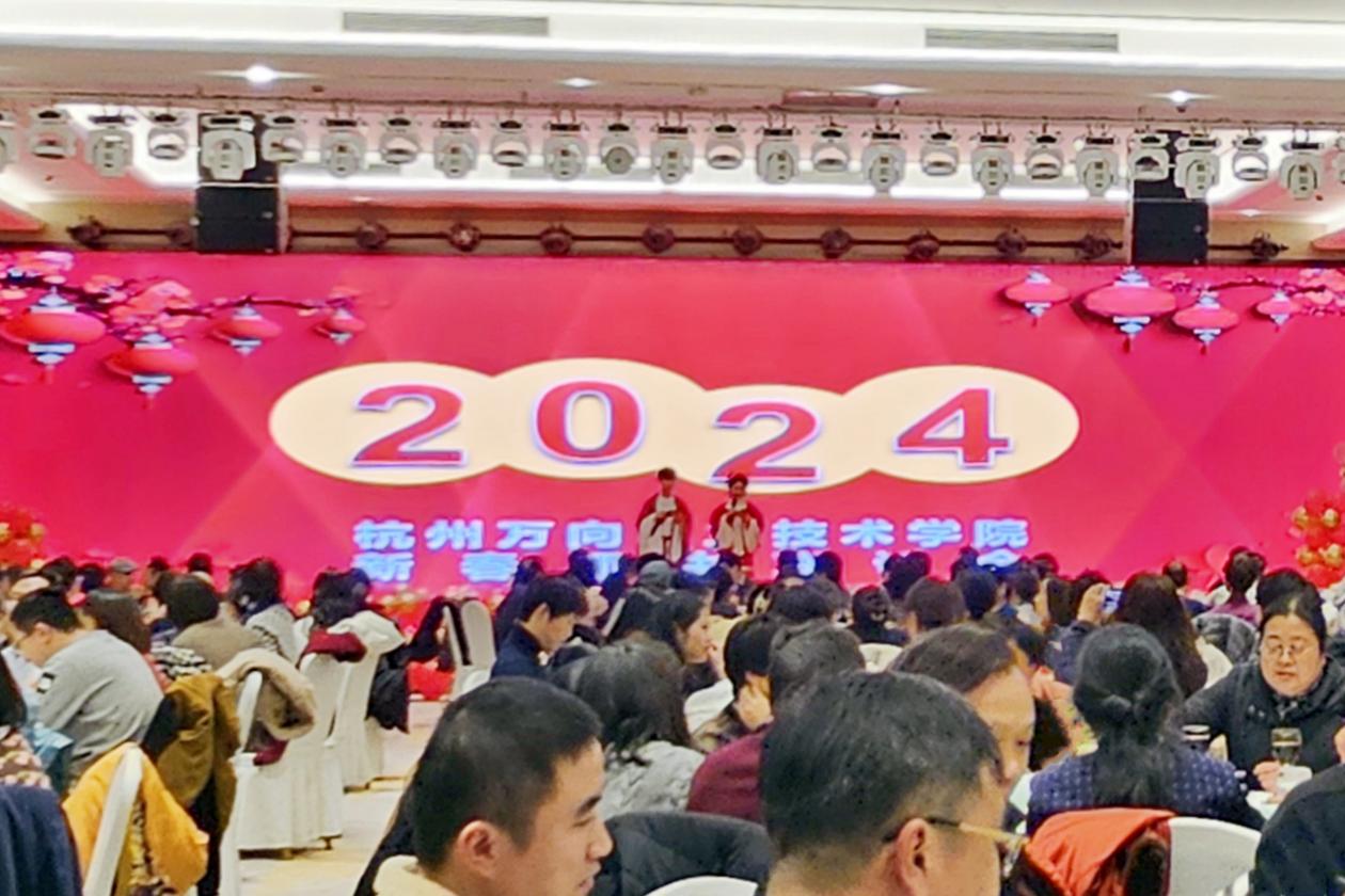 共欢龙腾起,迎送一宵中。1月19日傍晚,学院隆重举行2024年新春联谊会。院长牟惠康代表学院党政领导班子向全院教职工、广大校友及各界朋友致以诚挚的新春祝福,他总结了学院过去一年所取得的累累成就,对全体万院人凝心聚力呈献的高分成绩单表示由衷感谢。牟惠康强调,2024年是新中国成立75周年,也是是万向创业55周年,学院要坚持以习近平新时代中国特色社会主义思想为指导,全面贯彻落实党的二十大精神,围绕“爱心筑基、科艺提质、文化育人、开放示范”为年度工作方针,着力打造更有温度和气质的精品学院。联谊会还进行了精彩纷呈的文艺表演和多轮惊喜抽奖,现场气氛活跃,笑语连连。一元复始,万象更新,祝愿全院师生龙年大吉、健康和合、阖家幸福!