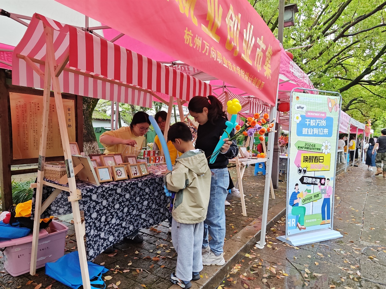 4月14日上午,一场别开生面的大学生就业创业市集在杭州市西湖区留下老街火热举行。