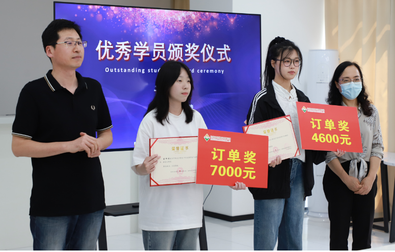 自2022年起,国际经济与贸易专业携手杭州保实生物科技有限公司联合开设校内生产性实训项目,培育学生外贸创新团队。在此合作项目中,学生作为企业实习外贸业务员,在企业导师的带领下,置身于企业工作环境中,开展客户开发、交易磋商、合同履行等真实外贸业务,截至今年4月,学生团队为企业获取了约15万欧元的订单。其中,邬璐遥、苗炜倩两位同学订单业绩突出,获得了企业颁发的订单奖(奖金分别为7000元和4600元)。