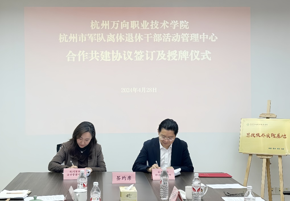 4月28日下午,我院与杭州市军队离休退休干部活动管理中心(杭州军休大学)签订战略合作协议。这是继浙江省博物馆、五四宪法资料陈列馆、杭州电子科技学院等多家单位,我院又一思政校外实践基地。