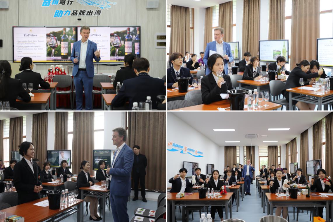 来自英国的Thompson教授在SHMS瑞士酒店管理大学担任教学项目主管,在泛酒店业教育领域拥有超过11年的丰富经验和国际视野。大师课堂上,他将瑞士的品酒课堂搬到我院酒店专业实训教室,现场为酒店管理专业学生们讲授葡萄酒管理专业知识,并邀请大家现场品酒。他还详细介绍了SEG瑞士教育集团在国际款待业管理教育领域的卓越成就和广泛影响力,以及SHMS瑞士酒店管理大学在泛酒店管理教育方面的专业优势和特色,分享了瑞士酒店管理的先进理念和实践经验,提出许多富有前瞻性的观点和建议。