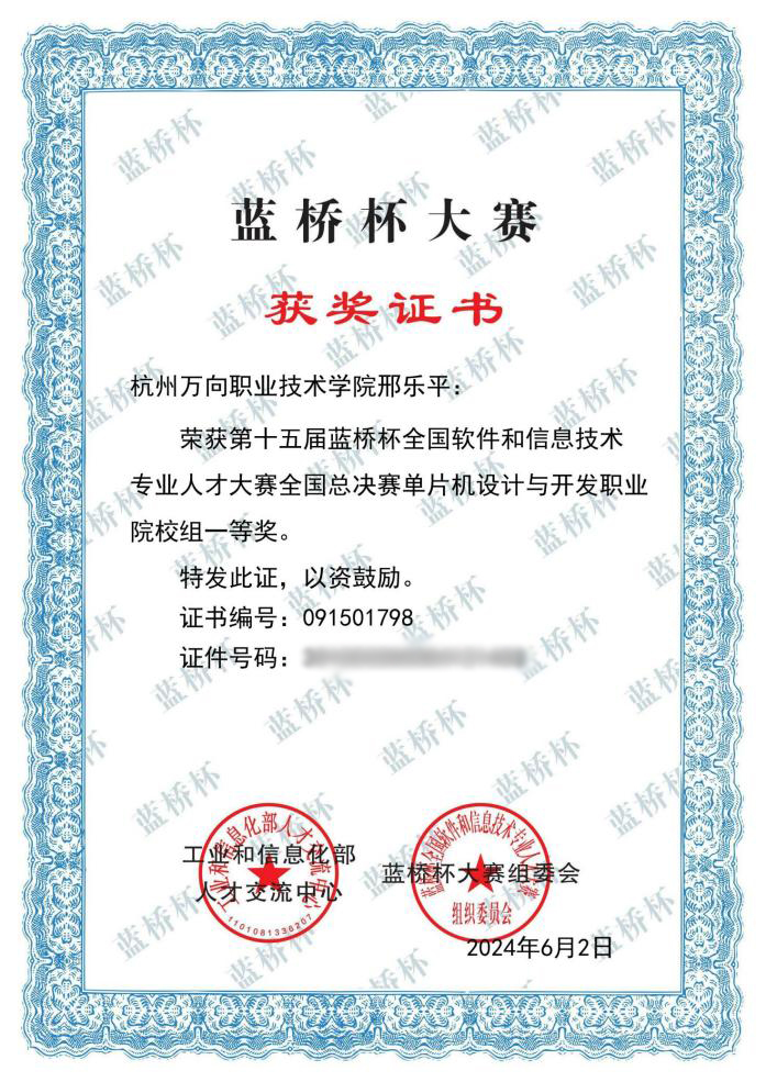 近日,第十五届“蓝桥杯”全国软件和信息技术专业人才大赛个人赛全国总决赛(电子类)圆满落幕。我院六名选手在机电一体化技术专业林必忠等老师的指导下,在激烈的竞争中脱颖而出。机电221邢乐平荣获一等奖,机电214王佑、机电213樊家强、机电231陈正毅获得二等奖,机电214金尔捷、机电231应王睿获得三等奖。