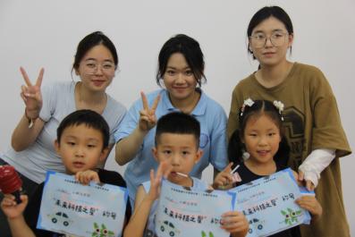 小朋友们领取奖品和未来科技之星卡
