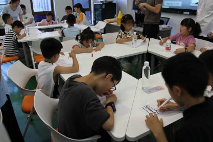 在智能网联教室中,孩子们通过绘画方式设计创意汽车车标。他们充分发挥想象力,创作出各具特色的未来汽车车标作品,每组派出优秀代表分享展示作品并说明设计创意。接着孩子们还亲手制作了汽车底盘模型,团队合作完成一台小车。完成小车搭建后开展了一次趣味汽车竞速,用自制小汽车进行挑战,看看哪个组的小汽车能用最短的时间到达终点。比赛中,小朋友们纷纷为参加比赛的队友呐喊加油。通过活动,小朋友不仅锻炼了动手能力,还深刻体会了团队合作的重要性。