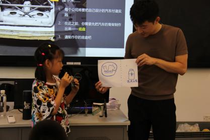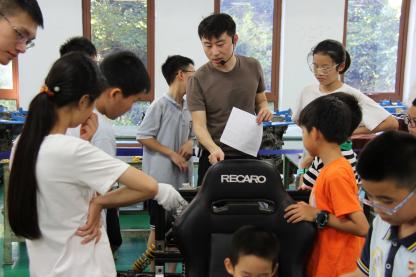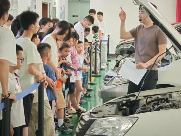 新能源汽车技术专业的学生为小朋友们讲解汽车知识