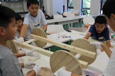 小朋友们分组开展汽车车标设计和小车搭建活动