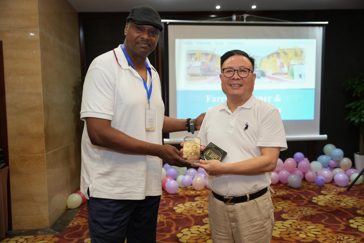 美方领队Calvin Young和赵云教授向学院赠送伊利诺伊大学纪念品