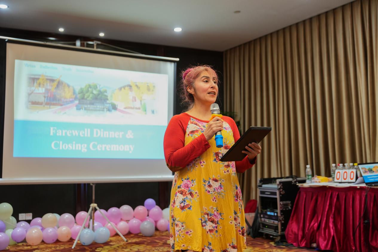 宴会上,中美学生合唱歌曲《今生缘》,表达朋友之间的友谊和离别的祝福。美方学生身着汉服进行歌舞表演和武术表演,赢得了现场的一阵阵掌声和欢呼声。告别晚宴在中美师生齐跳Wobble Dance中圆满落下帷幕。