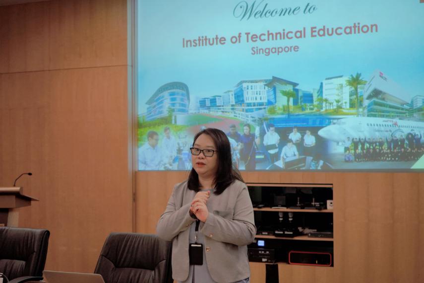 新加坡工艺教育局高级经理Yvonne Lian介绍学院信息