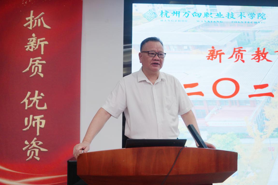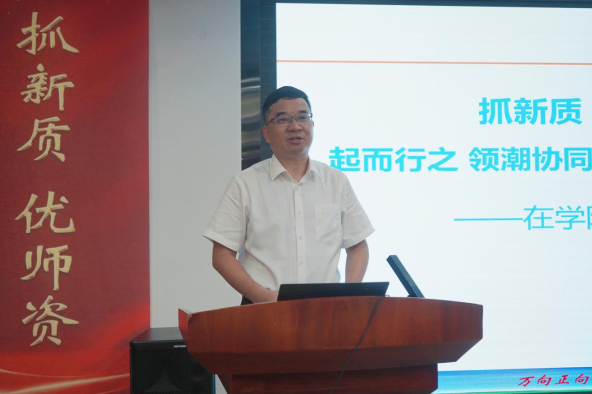 “今天我们在这里细数成绩、盘点收获、总结经验,同时登高望远、勇担责任、乘势而上”,学院党委书记管大源致辞。他从举旗帜、定方向,明思路、谋发展,凝共识、重落实,向未来、聚焦未来产业、行业前沿四个方面,要求与会人员贯彻鲁伟鼎董事长在“万向七一党课”和庆祝万向创业五十五周年会议讲话精神,“听党话、跟党走”,高举“高质量发展”旗帜,锚定“新质教育”方向,恪守“三真”标准,投入“三创”实践,履行个人责任。他指出,要在职业教育中“创”出一片新天地,一要抓新质,创造新动能、新优势;二要优师资,完善队伍结构、队伍建设;三要促转型,深化数字化、智能化、国际化;四要向未来,聚焦未来产业、行业前沿。他希望大家解放思想,改革创新,敢于求新、善于求新,为学院高质量发展贡献智慧和力量。
