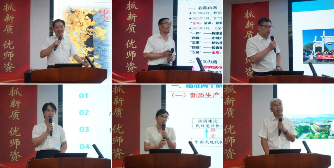 会议为期三天,首日议程中,学院相关负责人分别就办学能力、产教融合、“五金”建设、金专业与招生、金课程与教材、金师资与绩效等内容做主旨、主题报告,并充分交流。在小组讨论环节,与会成员分组就产教融合与金地建设、金专建设与育训并举、立德树人与金师建设、国际化与金课建设展开充分讨论。
